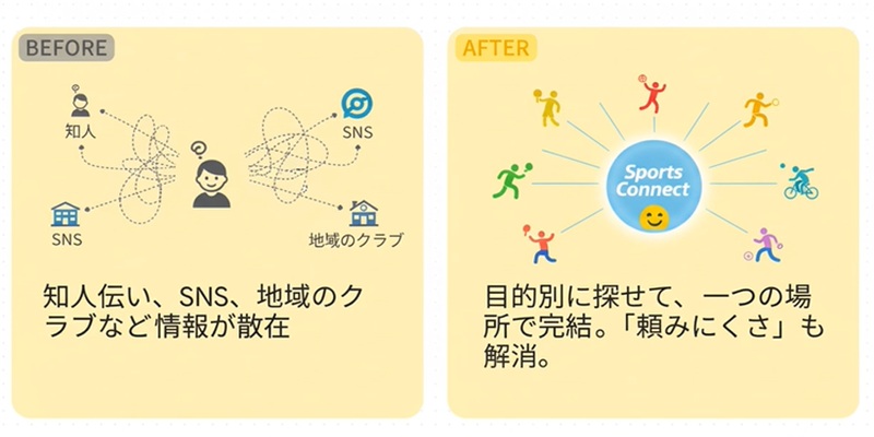 Sports Connectは、これらの課題を踏まえて設計しています。